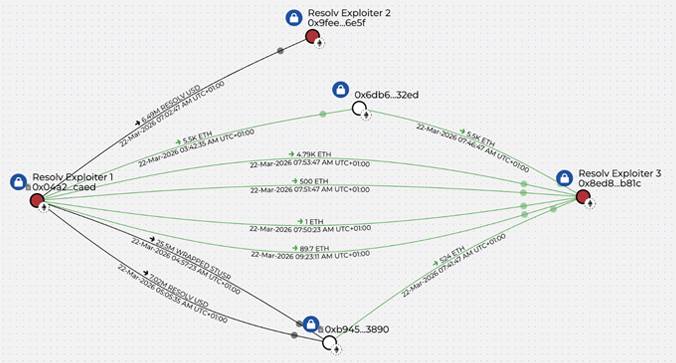 - 22 марта 2026, 01:50:59: Сначала злоумышленник создал запрос на обмен, внеся около 100 000 $USDC. Транзакция: 0x590b5c66df27b7f34cde721ca1b5f973ae047ffda370610491f694dade732c89