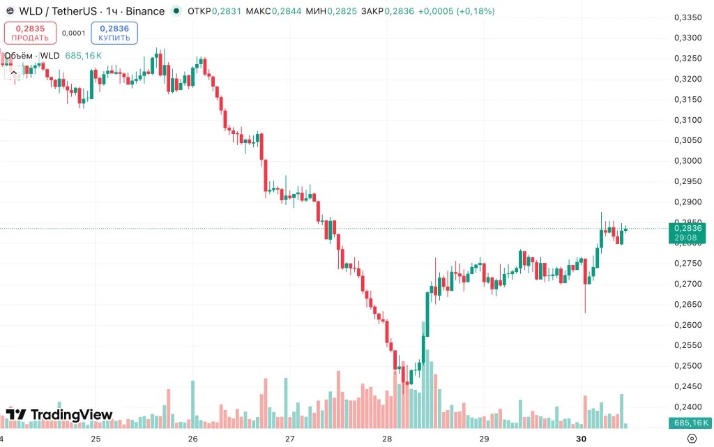 После объявления $WLD просел до $0,24 — самой низкой отметки за всю историю актива. На момент написания котировки восстановились до $0,28. Однако это все еще на 97% ниже пика, достигнутого в марте 2024 года на $11,82.