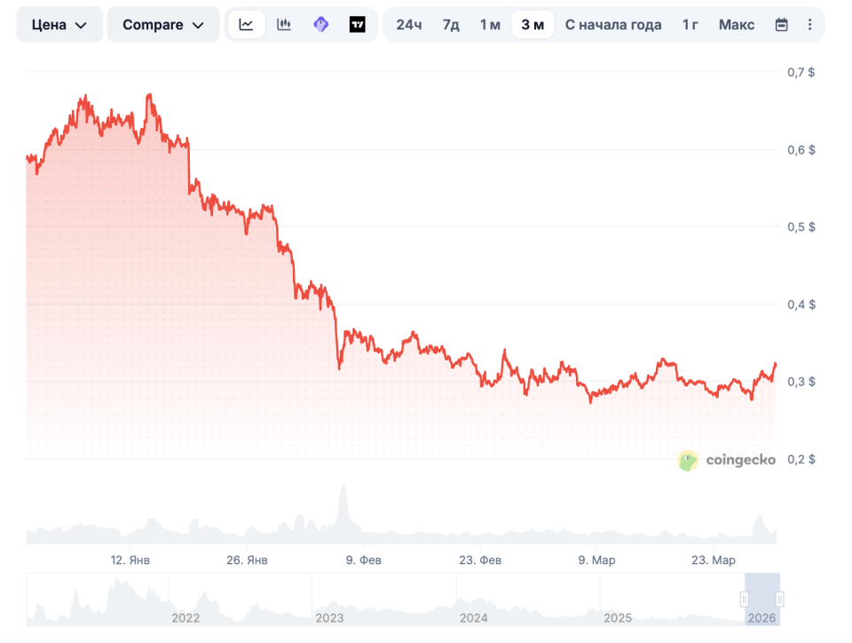 С января 2024 года цена $LDO рухнула на 92% от достигнутого тогда исторического максимума $4,05. Сейчас токена торгуется по $0,31.