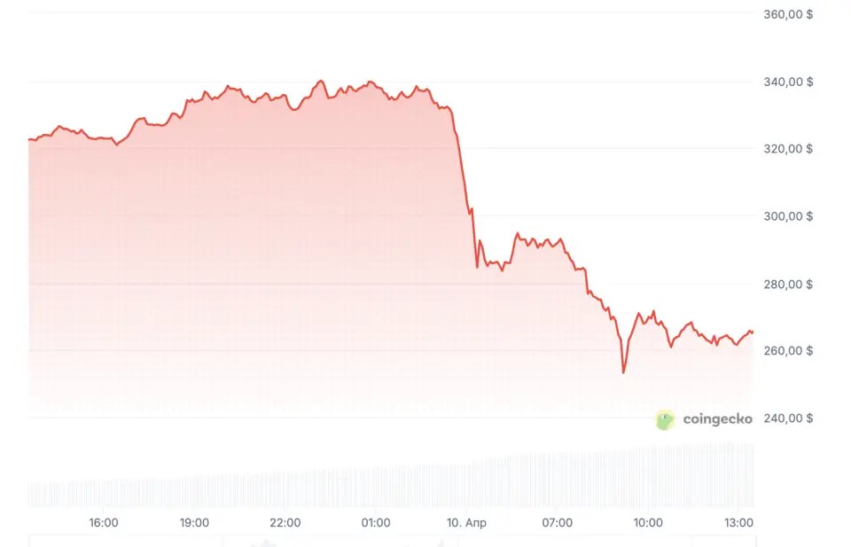 После поста Дэра в соцсети Х токен $TAO за несколько часов подешевел на 23% до $254. Позже цена немного отскочила до $265,68 (итоговое падение за сутки 17,7%). Незадолго до этого токен торговался выше $330. Капитализация $TAO за короткий период сократилась почти на $900 млн, позиции с плечом на сумму более $9 млн были ликвидированы.