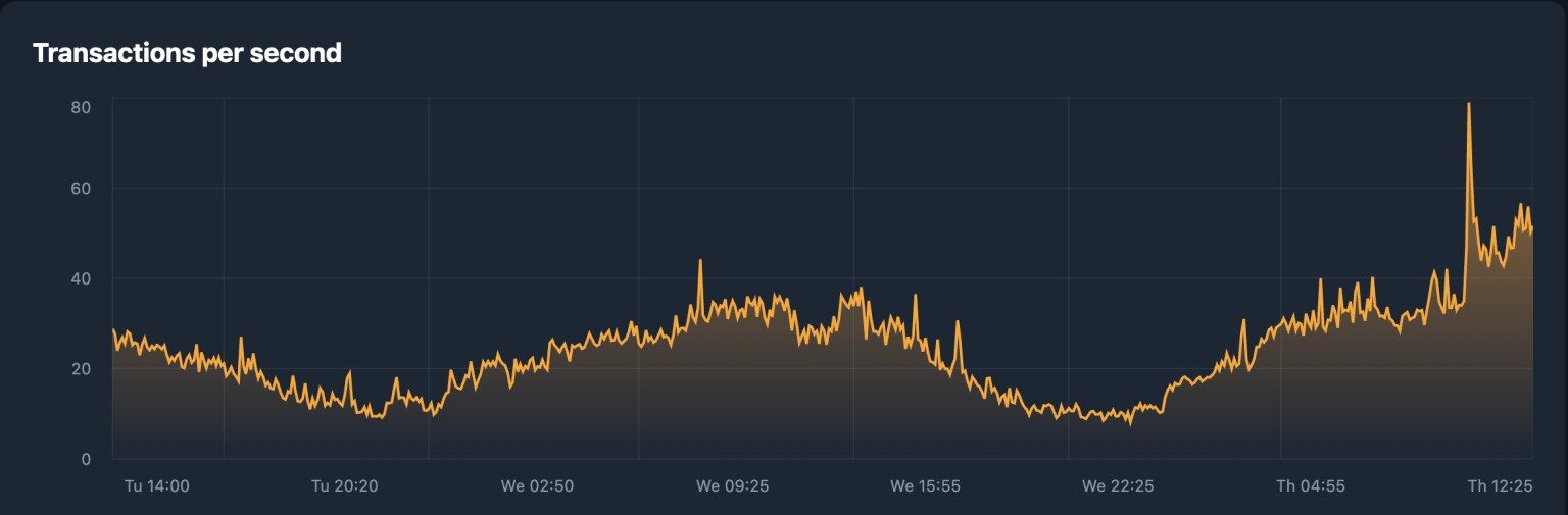 TPS $TON после обновления Catchain 2.0. Источник: $TON Explorer