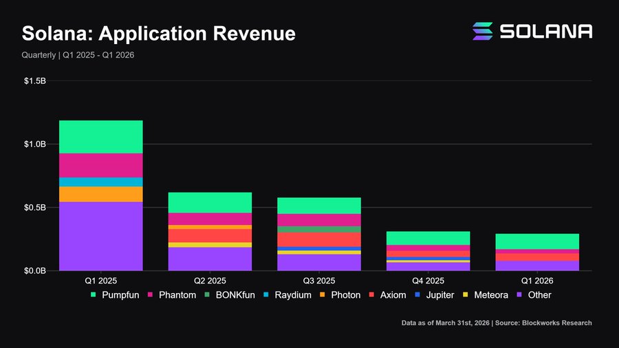 Приложения внутри экосистемы сгенерировали $292 млн выручки. Лидером остается платформа для запуска токенов Pumpfun, принесшая $123 млн — 42% от общего дохода приложений.
