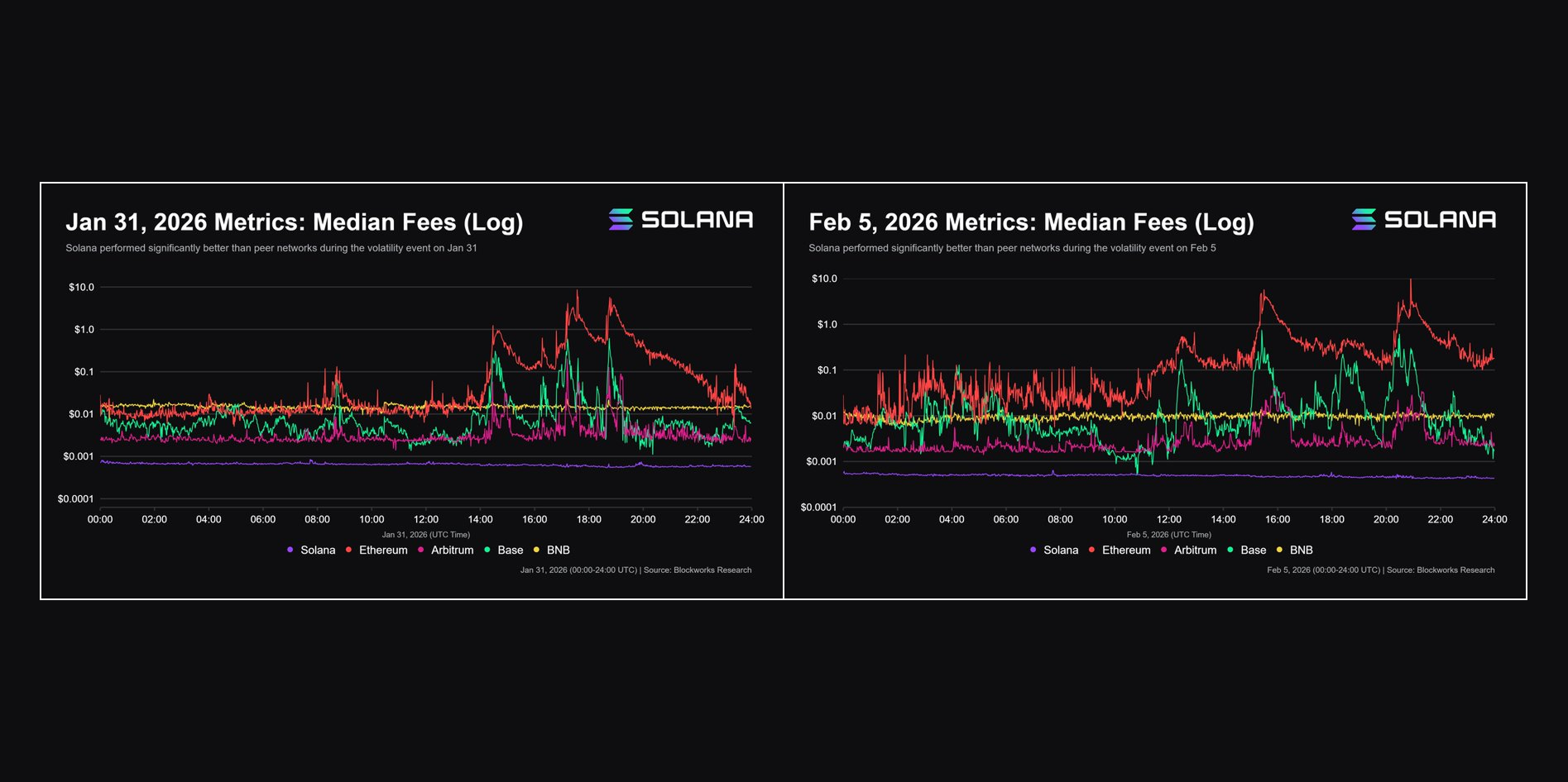 В начале года блокчейн прошел два стресс-теста. Во время февральских ликвидаций на сумму более $2 млрд, когда цена Solana обвалилась на 15%, комиссии в сети практически не изменились.