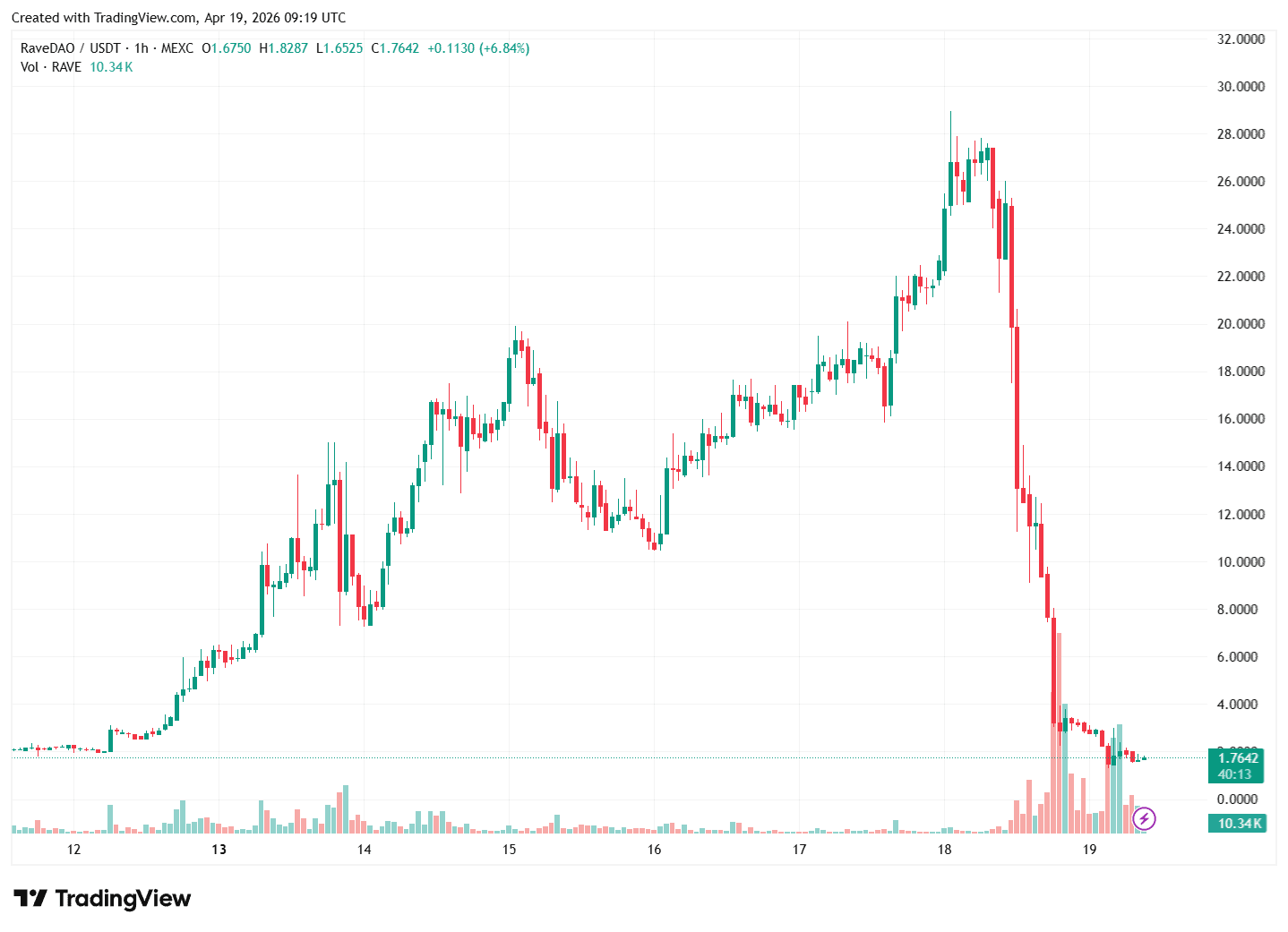 На момент публикации токен торговался около $1,76, потеряв 94% стоимости за сутки, по данным TradingView.