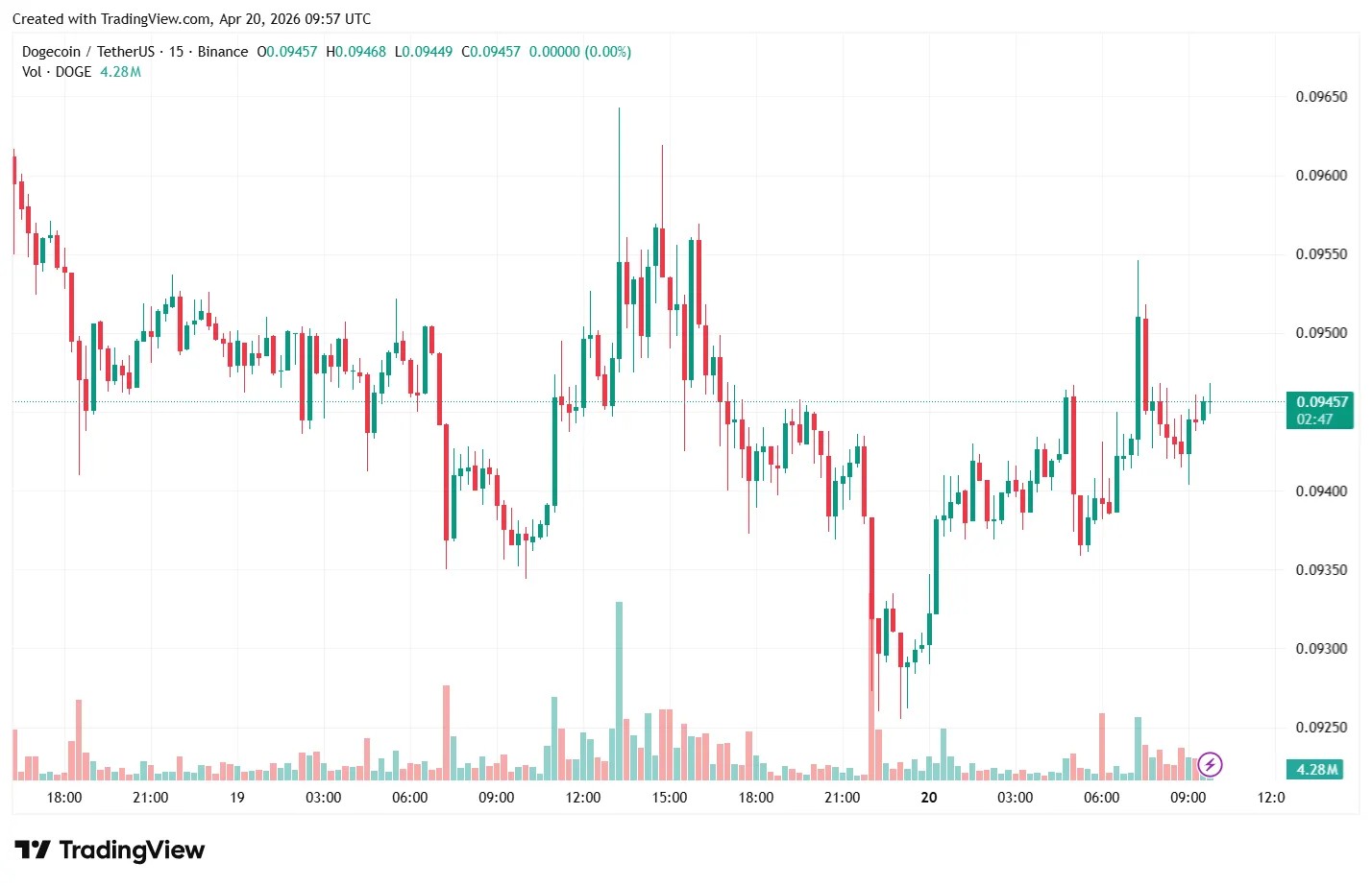 Несмотря на все это, взрывного роста не последовало. На момент написания $DOGE торгуется в диапазоне $0,094-0,095 (+1% за сутки).