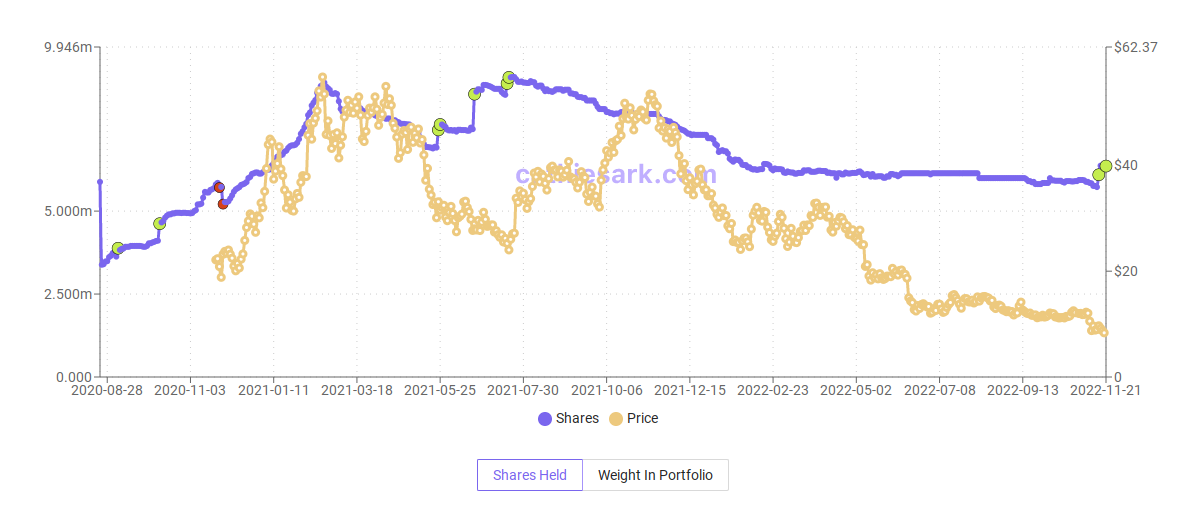 Coinbase также является лакомой добычей для ARK Invest. С начала ноября компания приобрела 1,3 миллиона акций COIN, доведя свою общую долю до 8,374 миллиона.