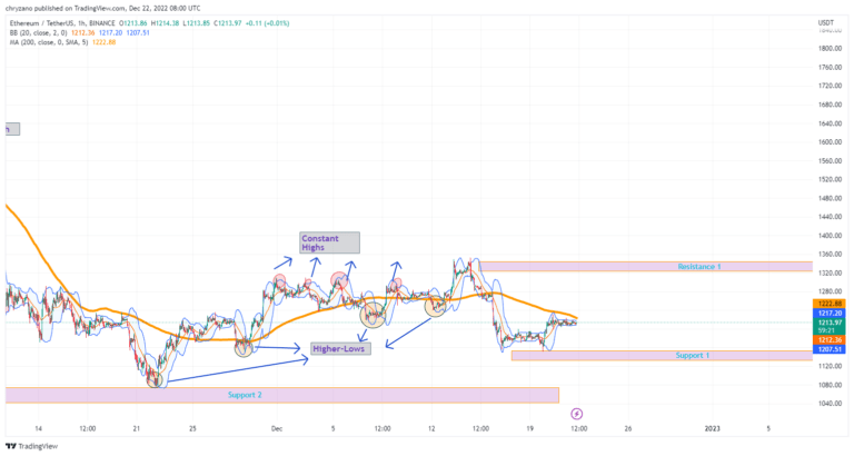 17 декабря цена ETH достигла $ 1162, после чего альткоин укрепил свои позиции, колеблясь до 20 декабря между $ 1160 и $ 1200. В дальнейшем Ethereum набрал некоторый импульс, поднявшись к уровню $ 1207.