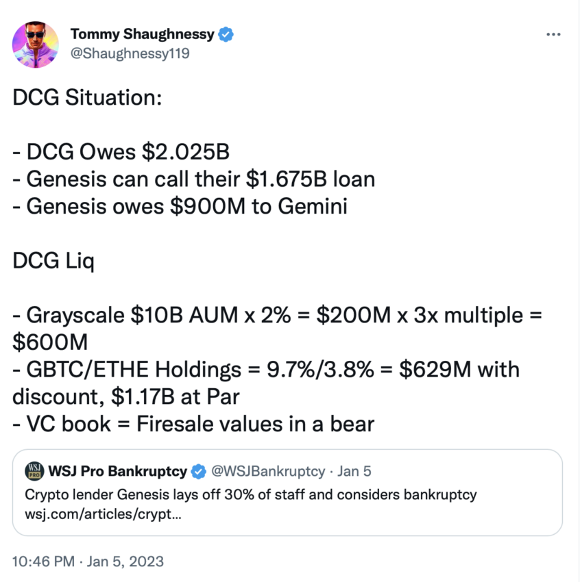 «Инвесторам следует обратить внимание на финансовые трудности Digital Currency Group (DCG), которые могут серьезно повлиять на криптовалютные рынки», — говорится в сообщении.