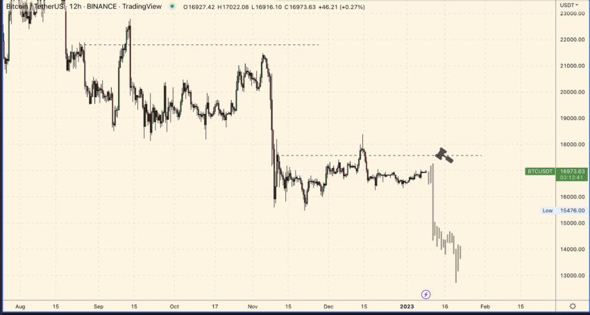 Трейдер, ведущий микроблог под ником TheoTrader, уверен в том, что впереди BTC ждет обновление минимумов. Его прогноз биткоина не исключает снижение до $10 тыс. При этом TheoTrader уверен в том, что активное движение BTC к новым циклическим минимумам произойдет в январе.