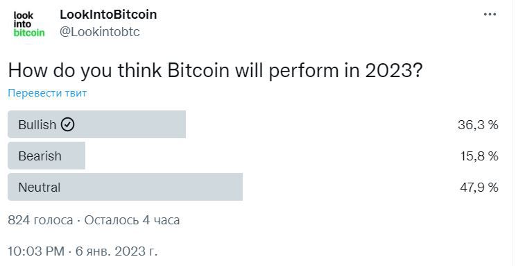 Большинство участников криптоиндустрии, как показывает результат опроса, ждут от рынка цифровых активов в 2023 году бокового движения. Вариант с дальнейшим падением оказался самым непопулярным.