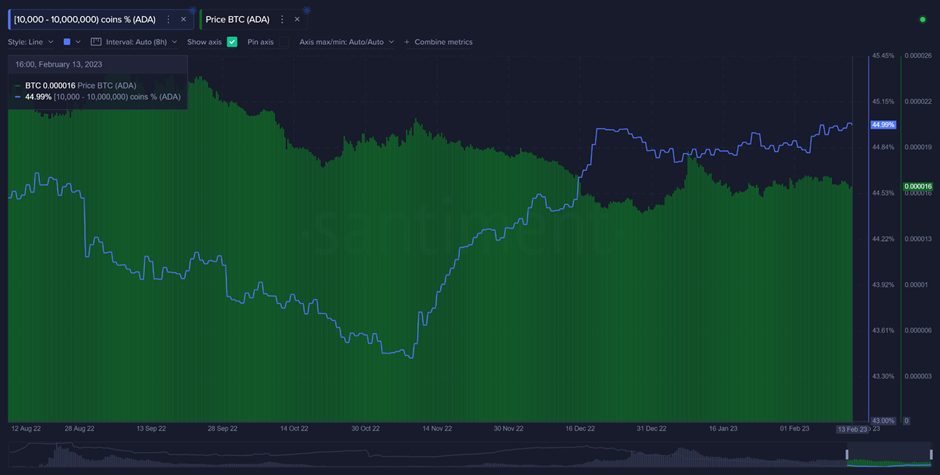 Ещё одним хорошим признаком является тот факт, что криптокиты и акулы накапливают ADA. После краха FTX они аккумулировали 659,53 млн токенов.