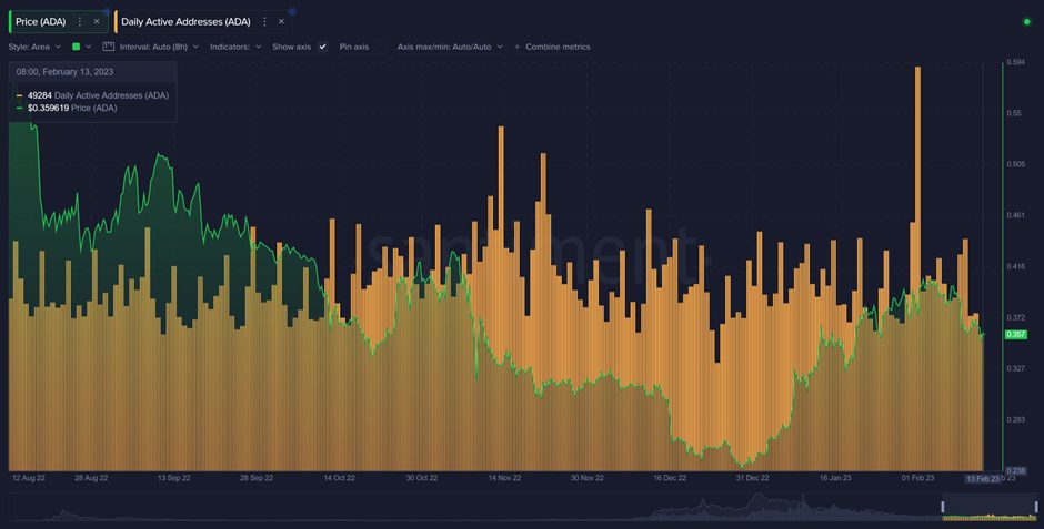 Ежедневно активные адреса ADA (Источник: Santiment)