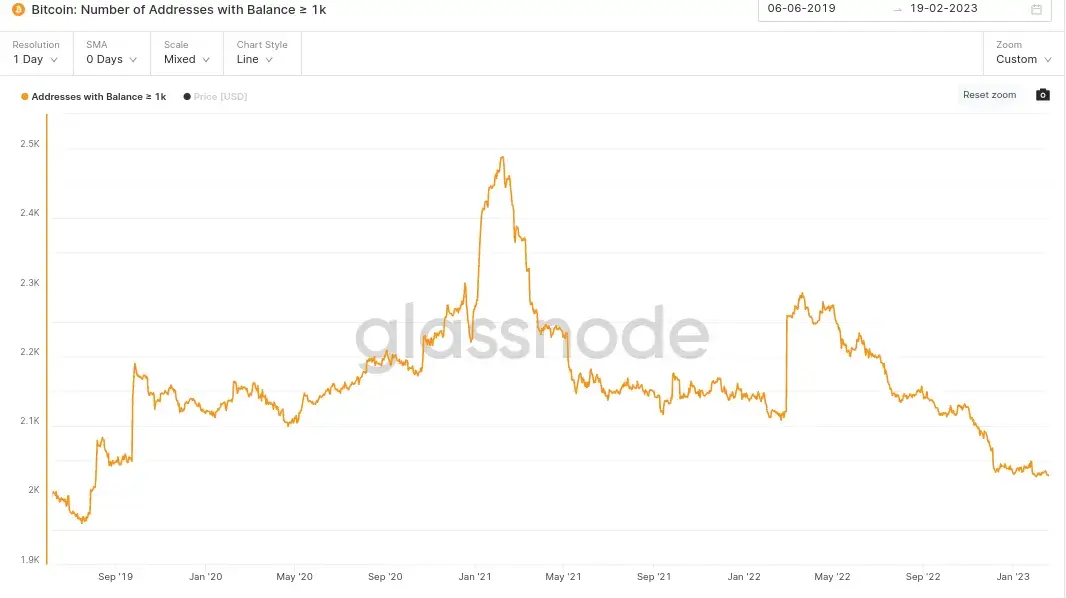 По данным экспертов платформы Glassnode, по состоянию на 19 февраля насчитывается 2027 таких кошельков – их ещё называют «китами», то есть крупными держателями криптовалюты. В долларовом эквиваленте каждый из них владеет минимум 25 миллионами долларов, а это явный показатель крепкой веры в перспективы Биткоина и заодно ранней связи с первой криптовалютой.