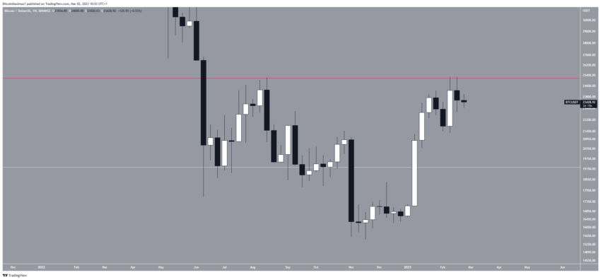 @CryptoCred не прибегает к техническим индикаторам и использует для определения направления тренда долгосрочные ценовые диапазоны. Он считает, что достижение верхней границы диапазона (красная линия) может привести главную криптовалюту к росту до $30 000. Но если этого не произойдет, у биткоина есть все шансы снова упасть к нижней границе на уровне $19 400 (белая линия). Закрытие недели выше $25 000 сделает этот сценарий недействительным.
