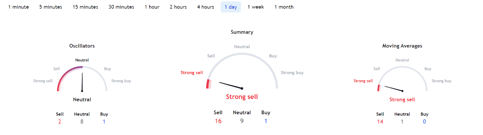 Наряду с этим однодневные индикаторы на платформе финансового и криптоанализа TradingView преимущественно медвежьи и предполагает «активную продажу» на уровне 16, как показано на осцилляторах, находящихся в «нейтральной» зоне на уровне 8 и скользящих средних, указывающих на «сильную продажу» на уровне 14.