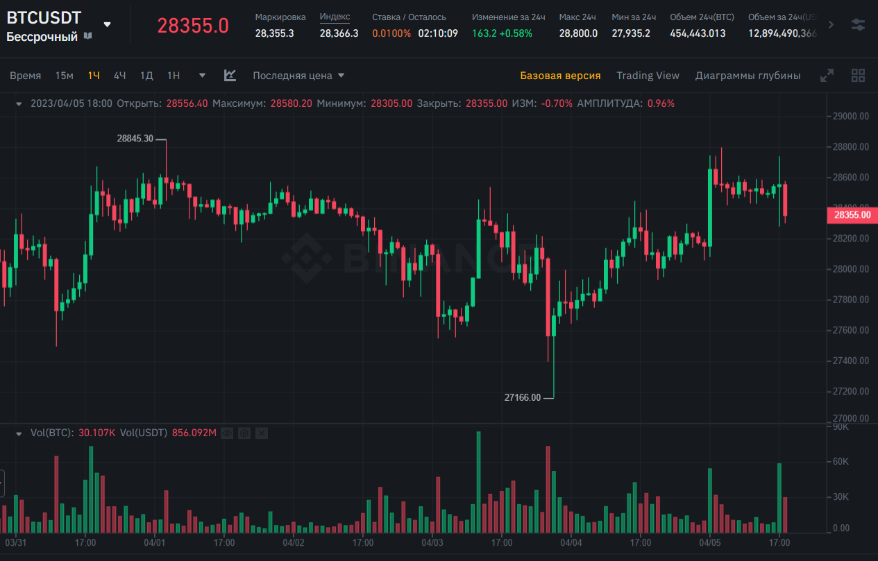 После этого наступит коррекция курса Биткоина, а потом снова начнется восходящий тренд криптовалюты. На 4-часовом таймфрейме роль критической поддержки выполняет уровень 27 000 долларов. Минимумы повышаются, так что вероятно продвижение вверх.