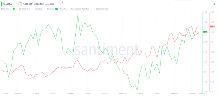 Исторически сложилось так, что покупки и продажи китами сильно коррелируют с ценовым движением ADA. Поэтому длительное накопление может стать катализатором нового ралли.