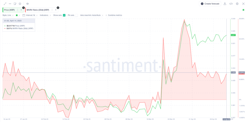 Индикатор MVRV свидетельствует о том, что цена Ripple может вырасти до $ $0,60, прежде чем столкнется со значительным сопротивлением. Этот показатель оценивает соотношение рыночной стоимости к реализованной и определяет потенциальные зоны покупки/продажи, оценивая среднюю цену, по которой текущие держатели приобрели актив.