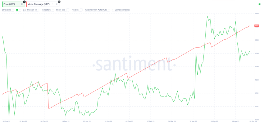 Согласно ончейн-данным, долгосрочные держатели все больше уверены в перспективах роста цены Ripple. На графике ниже видно, что средний срок обращения токенов XRP в этом месяце значительно увеличился. В период с 31 марта до 25 апреля он вырос с 1301 до 1325.