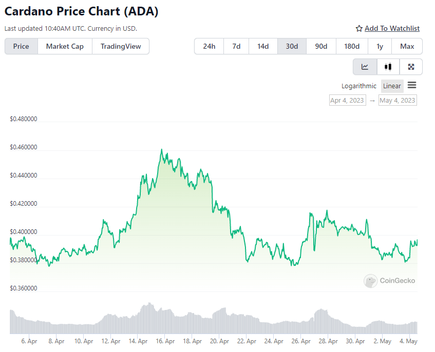30-дневный ценовой график Cardano. Источник: CoinGecko