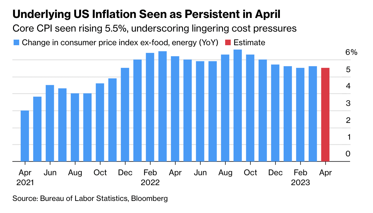 В частности, базовый индекс потребительских цен (CPI), который не включает продукты питания и энергоносители, за апрель может составить 5,5%, что почти соответствует предыдущему месяцу, по данным bloomberg.