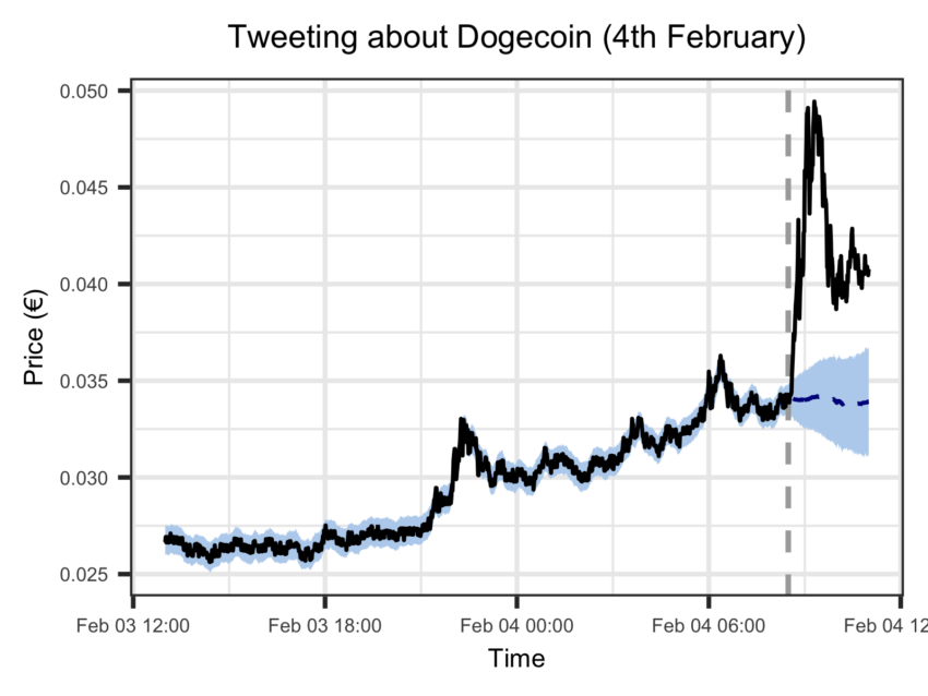 Колебания курса DOGE после твитов Маска. Источник: R-Bloggers