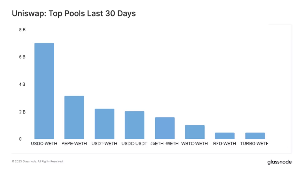 Скачок транзакционных комиссий в сети Ethereum в мае до значений бычьего рынка 2021-2022 года специалисты объяснили активностью пулов c ETH, WBTC, стейблкоинами и cbETH на Uniswap, отвергнув нарратив об ажиотаже, связанном с мем-токенами.