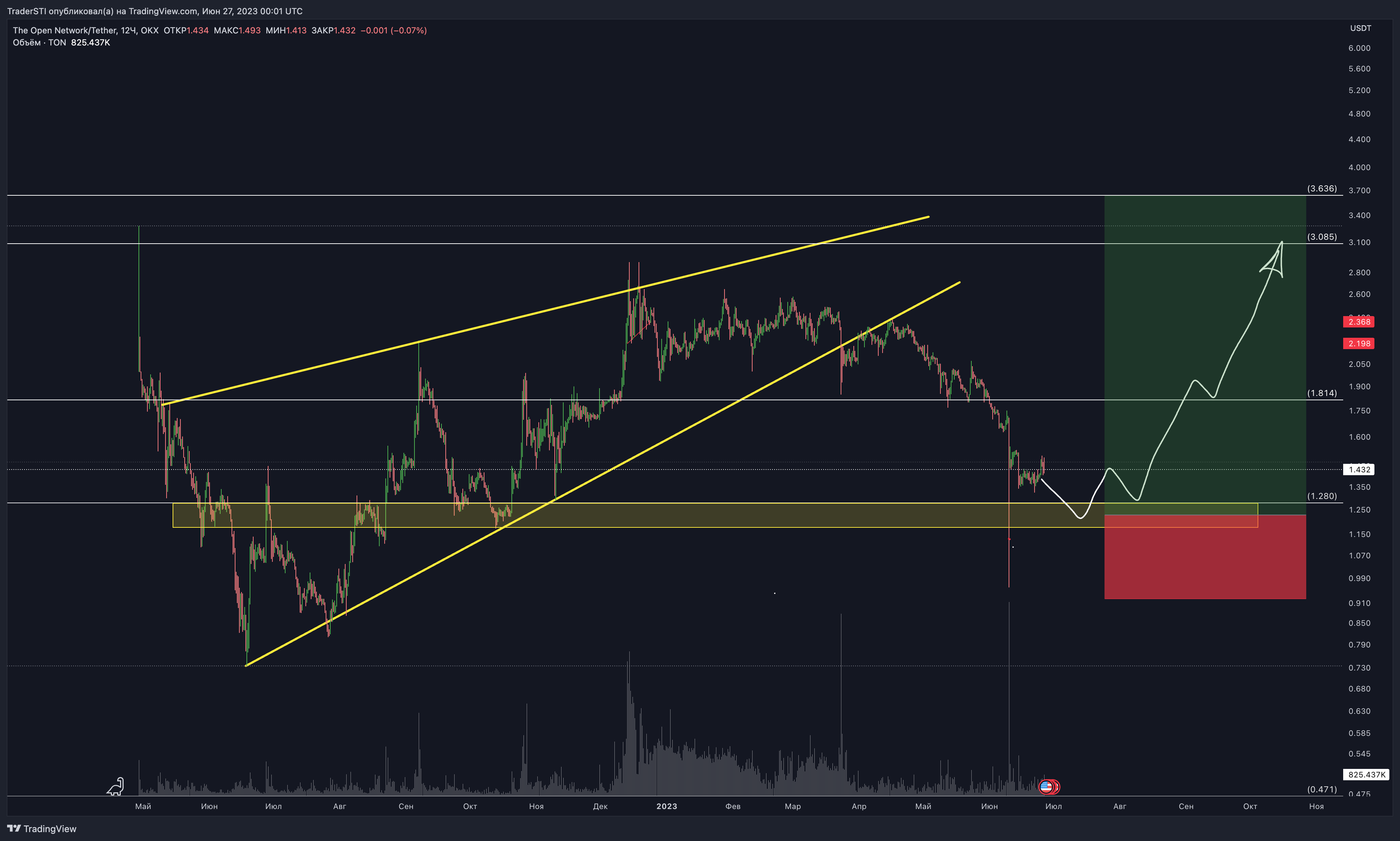 Я бы порекомендовал вложиться в TON на долгую дистанцию. Сила его технических показателей и растущая аудитория — не шутки. Если купить сейчас, на уровне поддержки, это может оказаться удачной ставкой. Можно посмотреть на график: