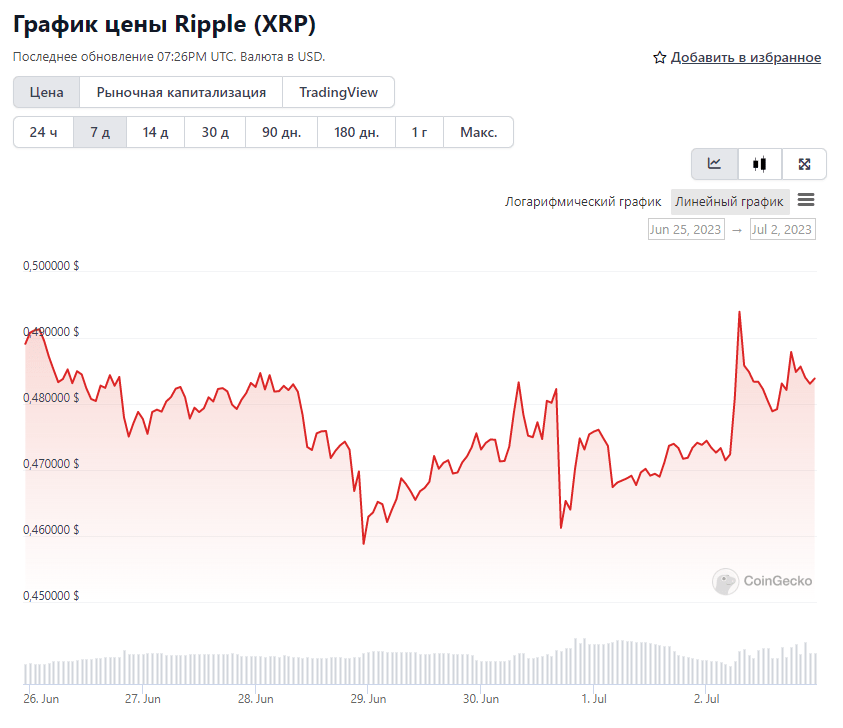 Семидневный график цены XRP. Источник: CoinGecko