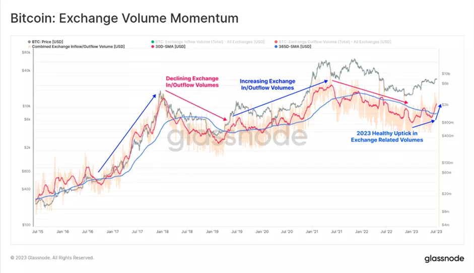 При сегментации потоков на и с централизованных платформ эксперты обнаружили превышение месячной скользящей средней переводов годовую. Исторически это является «признаком растущей ликвидности и внедрения с точки зрения денежных активов».