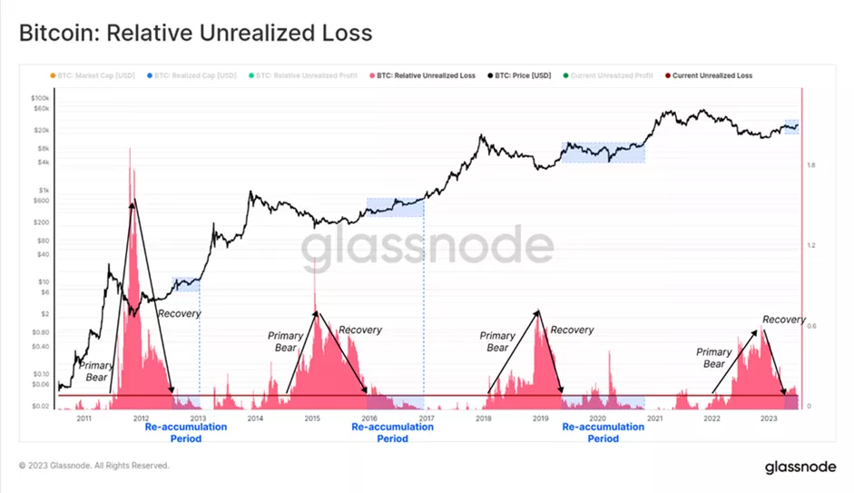 Достигнутый на рынке биткоина баланс монет ассоциируется с фазами «реаккумулирования» в предыдущих циклах. Последние характеризуются отсутствием сильных движений в течение нескольких месяцев, согласно Glassnode.