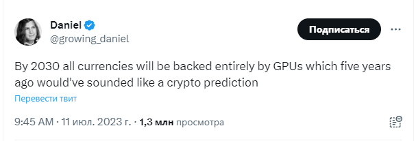 К 2030 году все валюты будут полностью обеспечены графическими процессорами, что пять лет назад звучало бы как криптопрогноз.