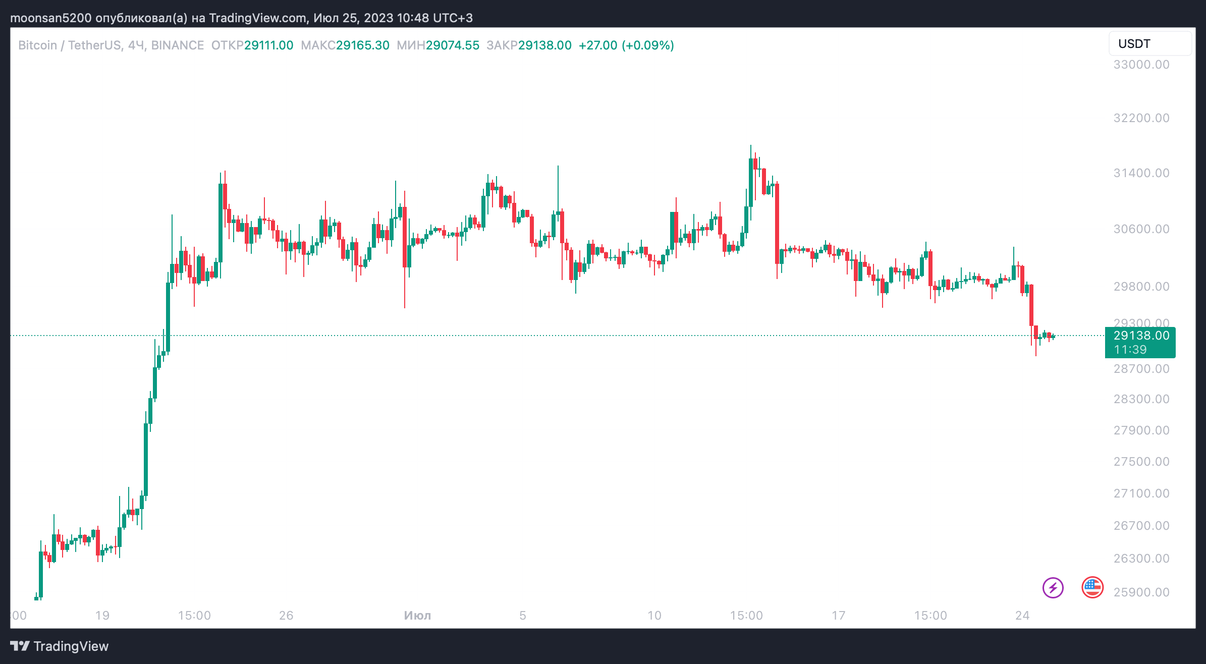 Перевод был осуществлён при цене Биткоина в 29 956 долларов на блоке 799701, то есть в обед 22 июля.