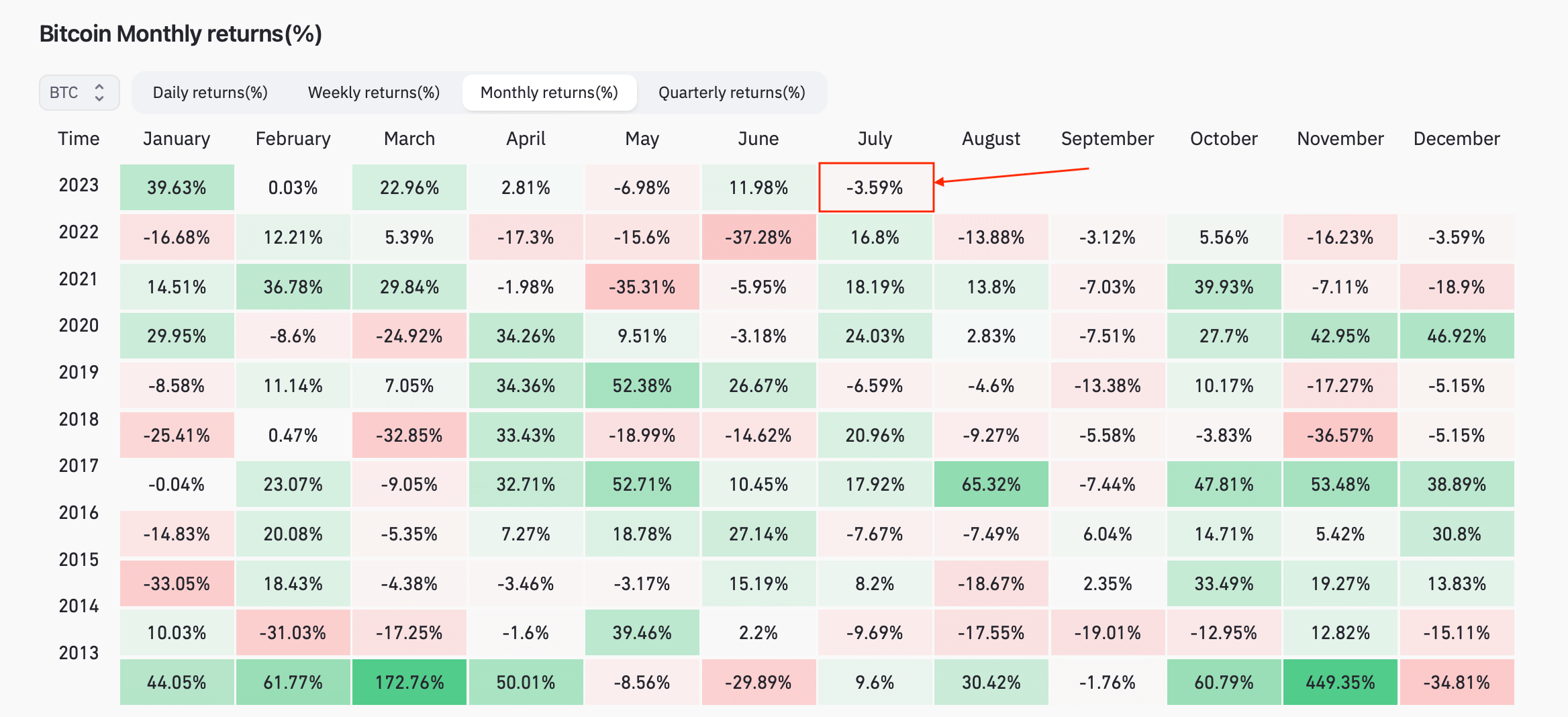 Обычно июль оказывается положительным для криптовалют. Если не считать события 2019 года, месяц заканчивался ростом Биткоина на протяжении последних шести лет.