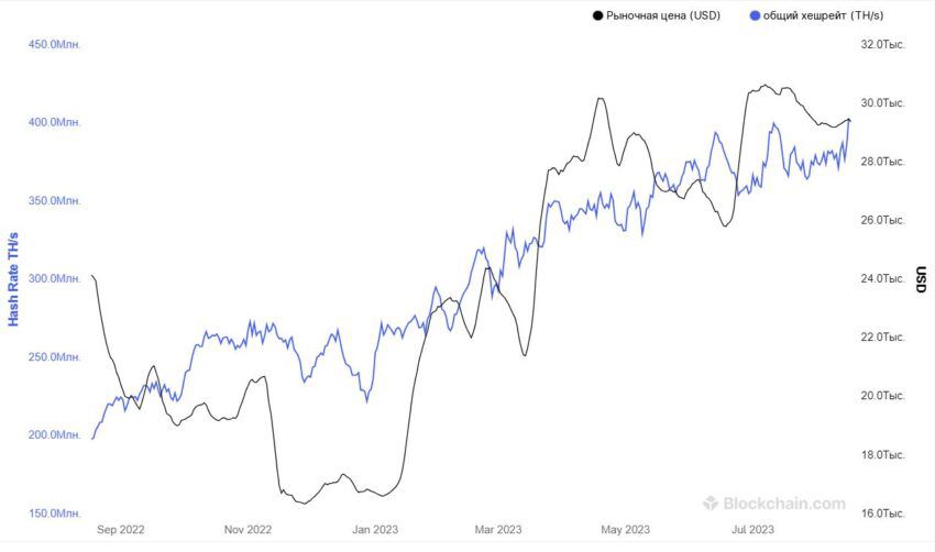 При этом хешрейт биткоина продолжает бить рекорды, что говорит о наращивании майнерами объема вычислительных мощностей для добычи криптовалюты.