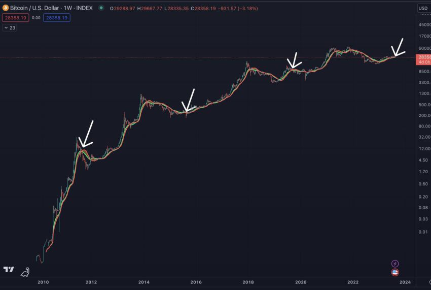 Популярный в криптосообществе аналитик, основатель Into The Cryptoverse Бенджамин Коуэн обратил внимание на то, что в предыдущих циклах BTC также выходил в коррекцию в августе/сентябре в годы, которые предшествовали халвингу. Напомним, следующее снижение скорости майнинга криптовалюты произойдет весной 2024 года.