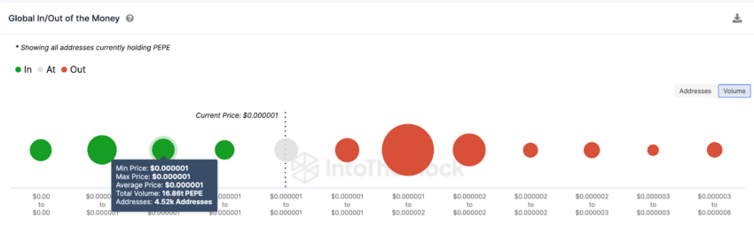 Согласно показаниям ончейн-индикатора MVRV, большинство инвесторов, купивших PEPE за последние 30 дней, несут убытки в размере 6%.