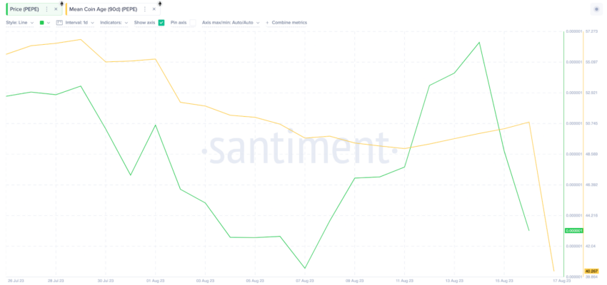 Устойчивое падение Mean Coin Age свидетельствует об ажиотаже продаж, особенно среди долгосрочных инвесторов. Негативный настрой держателей PEPE может свести на нет растущий бычий импульс. Однако если ни одна из стороне не возьмет верх, в ближайшие дни тренд останется нейтральным.