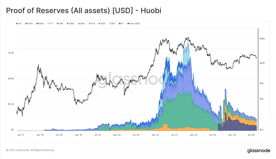 Согласно аналитикам, Huobi можно оценить где-то посередине между FTX и Coinbase c Binance. Они указали на потенциал роста значение метрики, учитывая постепенно снижающийся баланс активов на бирже.