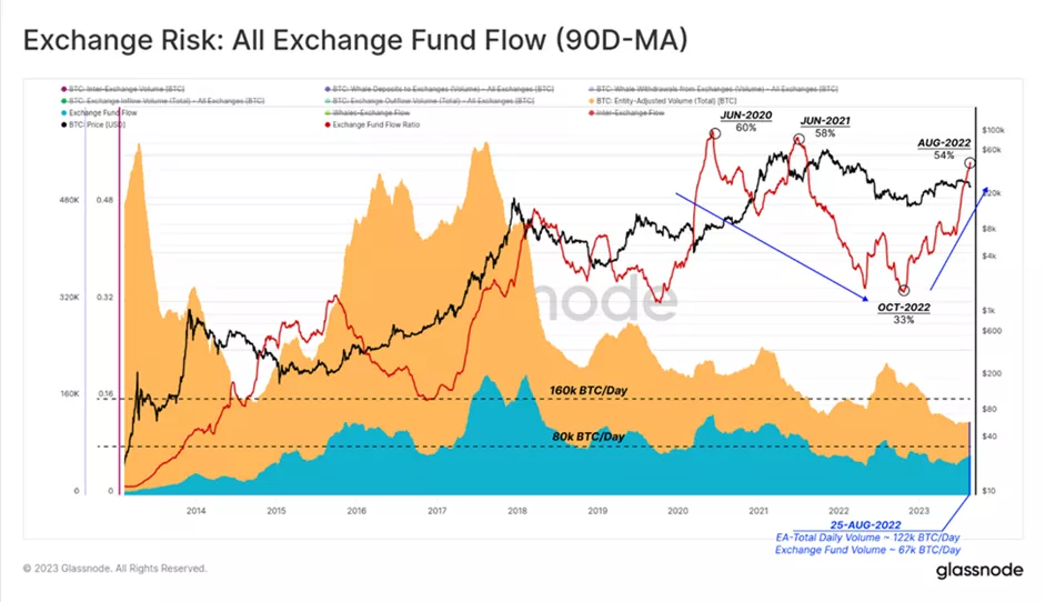 - Reshuffling Ratio — доля баланса биржи, которая обрабатывается внутри нее в течение определенного периода времени;