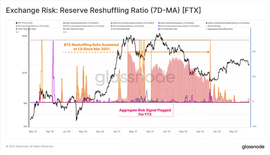 На примере FTX эта метрика достигала порогового значения с марта 2021 года до краха в ноябре 2022 года.