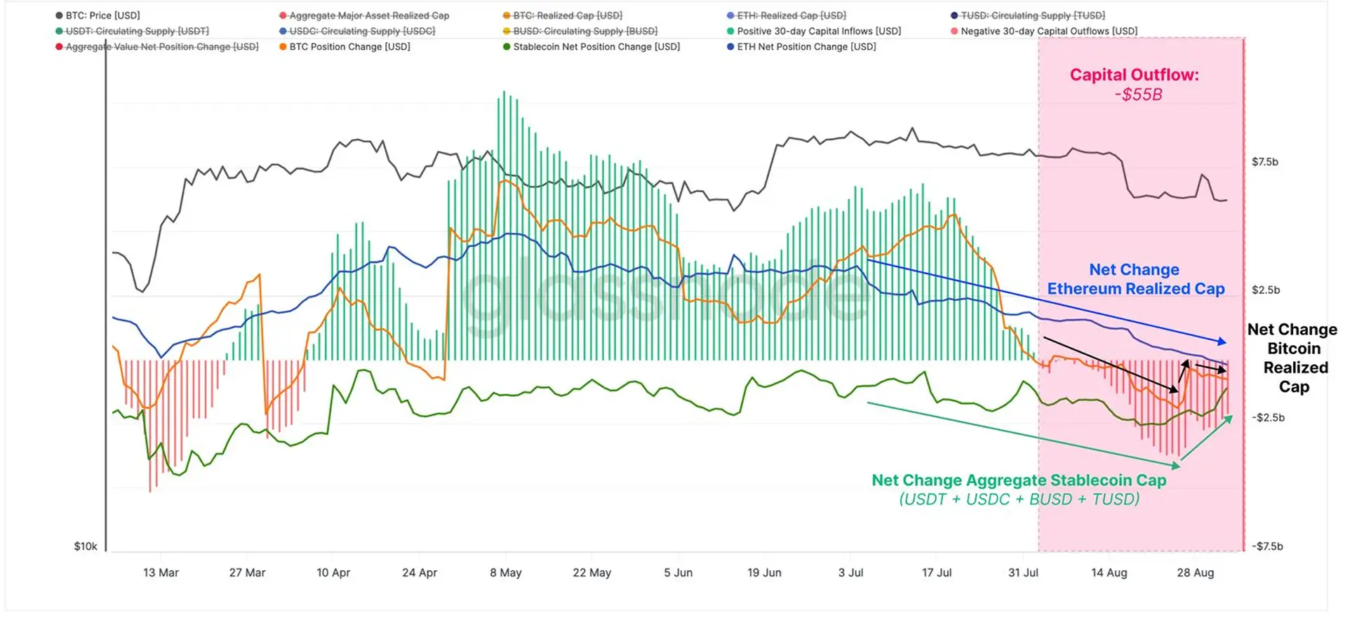 К сожалению, пока что в крипте наблюдается разве что крупный отток капитала. Эксперты биржи Bitfinex провели исследование рынка и обнаружили, что только за август индустрию покинул эквивалент 55 миллиардов долларов. Тренд не только негативно повлиял на цену Биткоина, но также привёл к падению общей ликвидности на рынке.