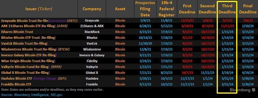 Следующие дедлайны по заявкам на запуск Биткоин-ETF