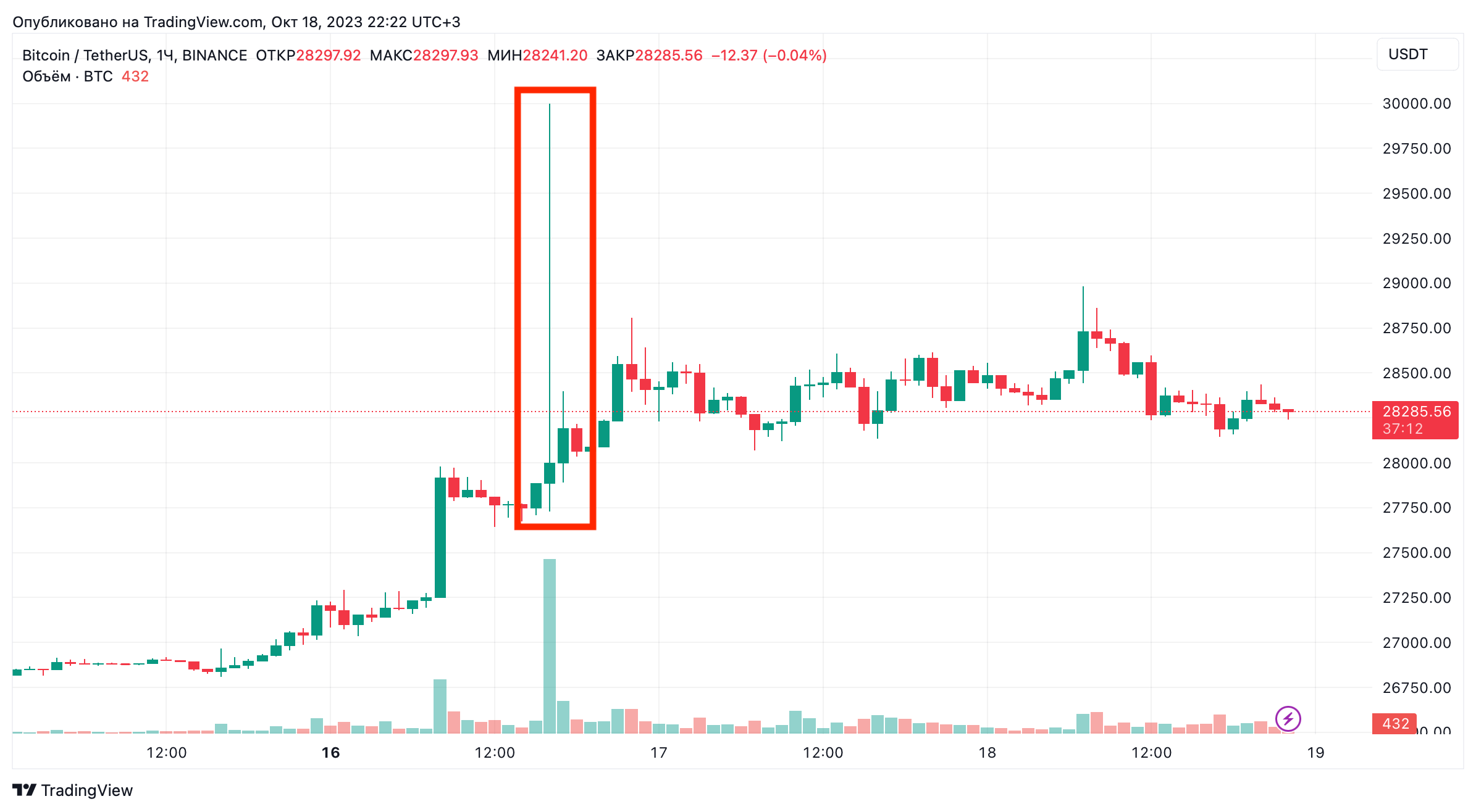 Та самая свеча роста Биткоина из-за фейковой новости от Cointelegraph