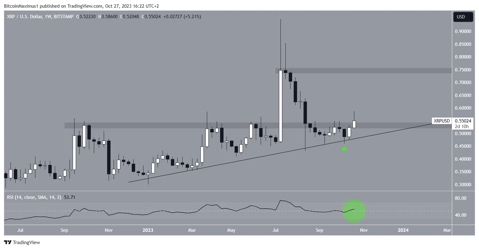 Курс XRP дорос до $0,586. Однако, чтобы сигнал подтвердился, нужно, чтобы токен закончил неделю выше $0,55.