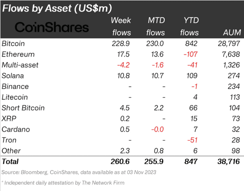 Например, по данным CoinShares, фонды, ориентированные на Solana, один из барометров для измерения институциональных потоков на рынке SOL, зафиксировали приток средств на сумму $10,80 млн за неделю, закончившуюся 3 ноября.
