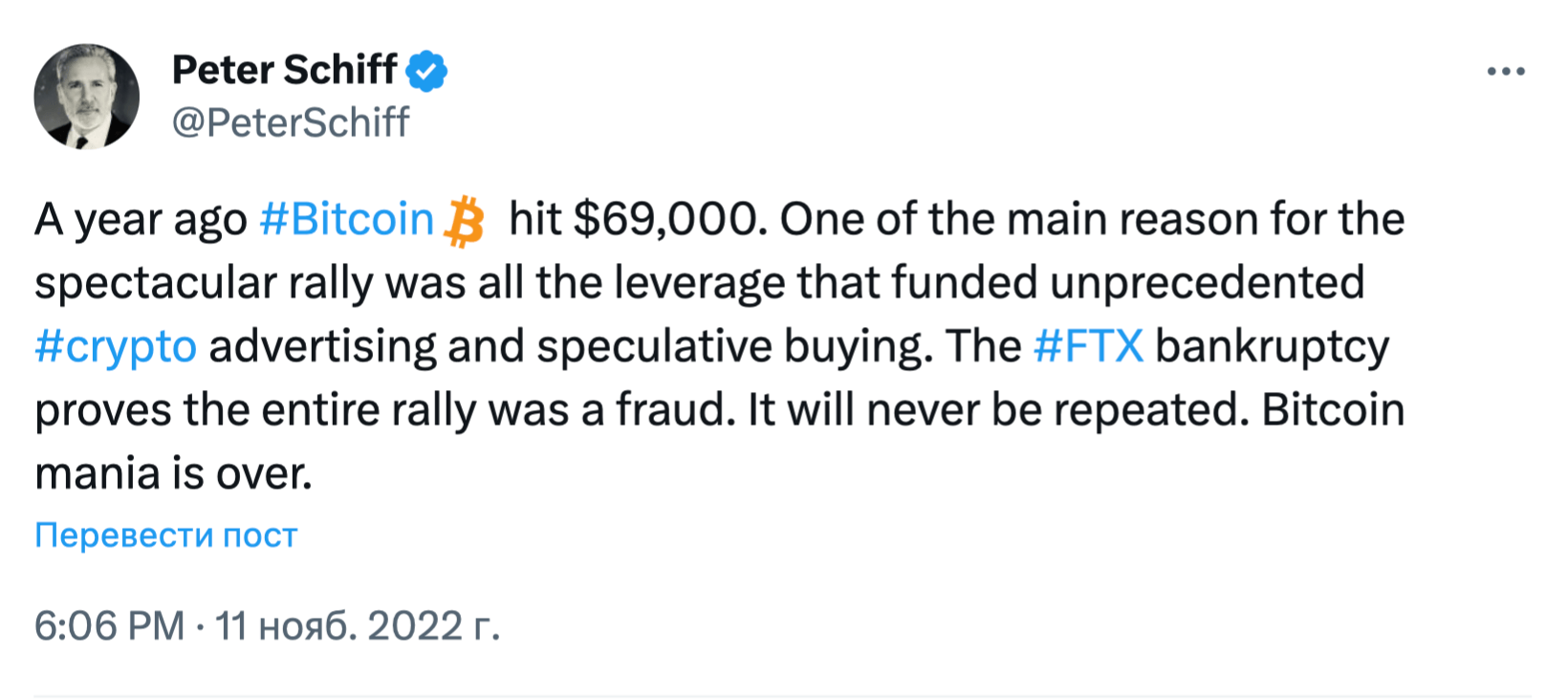 Чуть больше года назад известный критик Биткоина Питер Шифф заявил об «окончании Биткоин-мании»