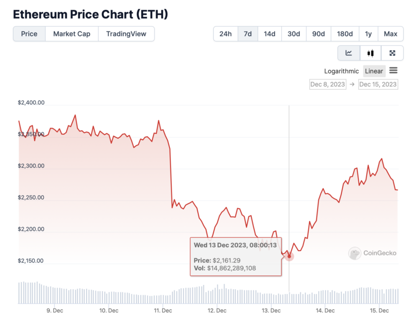 Падение Ethereum оказалось не таким драматичным. После короткого спуска в область $2150 котировки актива вернулись к отметке $2250-2300.