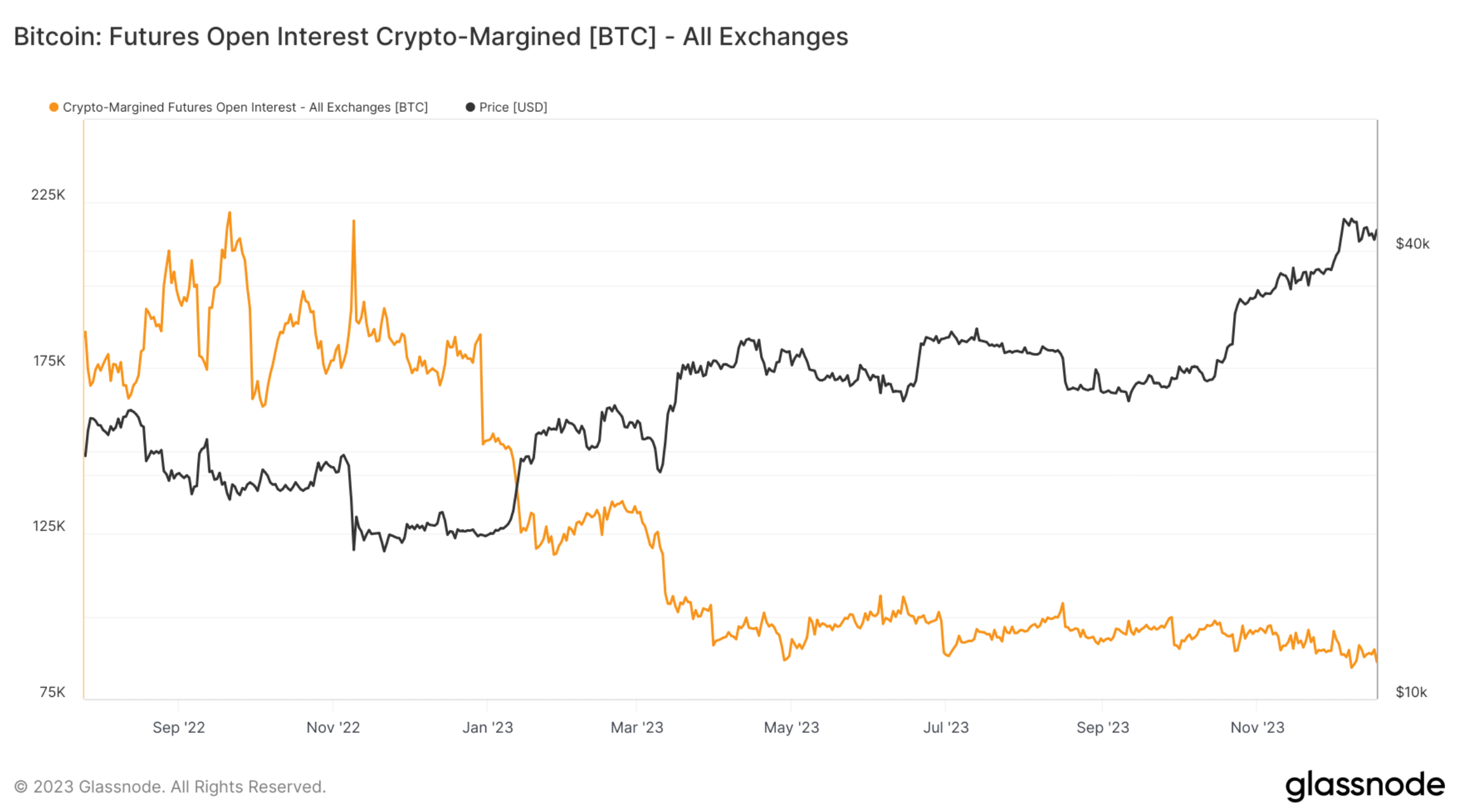 Deribit – единственная биржа, на которой в настоящее время наблюдается значительное кредитное плечо. А вот Binance, крупнейший игрок индустрии, демонстрирует продолжение нисходящего тренда по ELR, приблизившись к минимуму с декабря 2022 года.