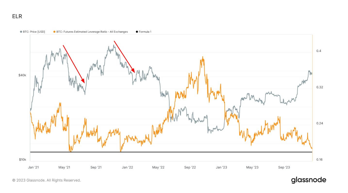 Сейчас ELR приблизился к своему историческому минимуму, причём нечто подобное случалось всего лишь два раза в истории рынка. Соответственно, трейдеры крайне консервативны и торгуют преимущественно на свои деньги, чтобы избежать потенциально больших потерь. Как отмечают эксперты, сложившаяся ситуация не совпадает со стремительным ростом цены BTC за последние пару месяцев.